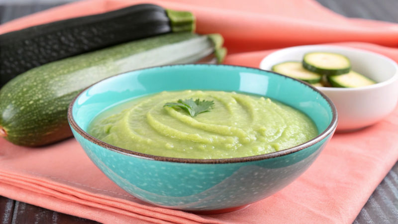 - Прикорм по месяцам начинается с овощного пюре2. Кабачок становится первым продуктом, он легко усваивается, редко вызывает аллергию. Начинают с половины чайной ложки, постепенно увеличивают порцию.