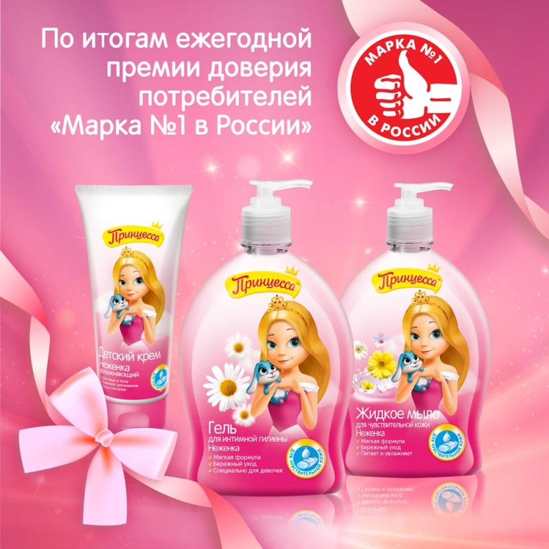 "Принцесса" создана специально для маленьких и подрастающих Принцесс. В этой линейке есть все, что необходимо девочке — от средств для ухода за волосами и телом до декоративной косметики, нежнейшей парфюмерии, зубных паст и специальных продуктов ("Послушные кудряшки", "Некусайка). Выпускаются также подарочные сеты — идеальное подарочное решение на день рождения девочки (3-10 лет).