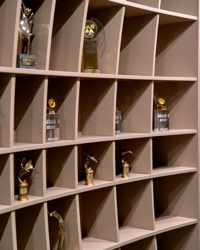 В результате помещение площадью 100 квадратных метров было успешно переделано под пространство, где было бы комфортно работать, проводить переговоры и вести прослушивания. Большой стол, удобный диван, стенд со всеми наградами и призами – так под конец работы выглядела лофт-студия, которую браться нарекли своей «холостяцкой берлогой».