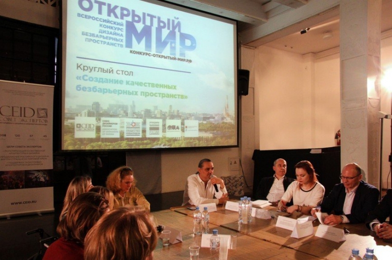 Дискуссия профессионалов в этой сфере была организована Оргкомитетом всероссийского конкурса дизайна безбарьерных пространств «Открытый мир» и Советом экспертов интерьерного дизайна и архитектурной среды / CEID. В работе круглого стола приняли участие такие специалисты, как советник председателя Всероссийского общества инвалидов (ВОИ), директор АНО «Центр изучения проблем инвалидов "Общество для всех"» Евгений Бухаров, заместитель руководителя управления ВОИ Денис Горшко, эксперт по доступной среде Московской областной организации ВОИ Александр Зеликов, руководитель отдела «Универсальный дизайн» в РООИ «Перспектива», дизайнер и общественный деятель Мария Генделева, менеджер проектов «Универсального дизайна» Екатерина Фаевцева, вице-президент фонда «Город без барьеров» Сергей Чистый, председатель правления НКО «Мир старшего поколения», предприниматель в социальной сфере Алексей Сиднев, руководитель проектов Национальной ассоциации участников рынка ассистивных технологий «АУРА-Тех» Филипп Савельев, управляющий директор АНО дополнительного профессионального образования «Центр обучения профессионалов здравоохранения» Валерия Юратева, представитель информационно-консультационного центра «Бизнес-Тезаурус» Олег Шестоперов, заведующий кафедрой «Проектирование зданий и сооружений» НИУ МГСУ Павел Стратий, архитекторы-практики Евгений Полянцев, Мария Насонова, Анастасия Топоева, Илья Мукосей; блогер, участник общественного движения «Доступ открыт» Сергей Ризин, председатель правления АНО «Совет экспертов интерьерного дизайна», председатель Оргкомитета всероссийского конкурса дизайна безбарьерных пространств «Открытый мир» Сергей Шустов, руководитель проекта «Открытый мир» Вероника Ершова, главный редактор портала для архитекторов и дизайнеров Archiprofi.ru Андрей Чирков.