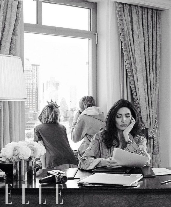 42-летняя Анджелина Джоли стала героиней мартовского выпуска американского журнала Elle. В черно-белой фотосессии известная актриса снялась со своими детьми. Также она дала интервью, в котором рассказала о нюансах воспитания дочерей и советах, которые она им дает.
