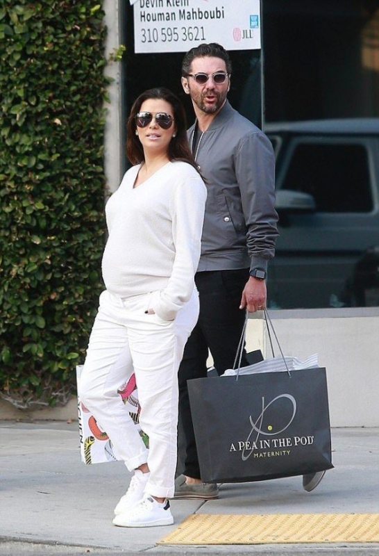Фотографы сделали снимки беременной Евы Лонгории, когда она неторопливо прогуливалась по магазинам со своим мужем Хосе Антонио Бастоном. Супруги зашли в детский отдел и накупили там одежду для будущего малыша. Поклонники актрисы заметили, как бережно Хосе относится к своей супруге. Ева была одета во все белое: широкий свитер, брюки и удобные кроссовки. Весь ее вид просто излучал радость и умиротворение. А после шоппинга Ева и Хосе пообедали в одном из ресторанов Лос-Анджелеса.