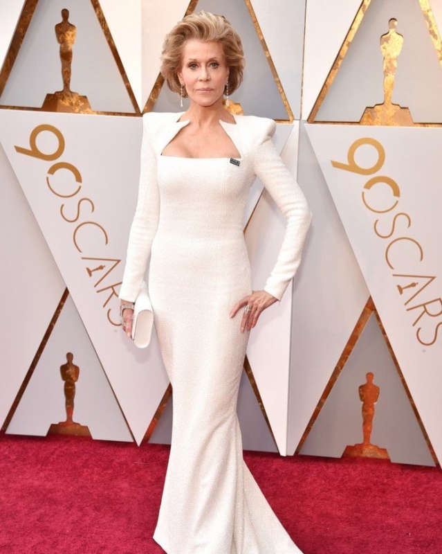 Для "Оскара" Джейн выбрала простое, но элегантное платье от Balmain, дополнив его белым клатчем, изящной укладкой и неброским макияжем. В своем мнении об образе актрисы пользователи сети однозначны - легко и с достоинством Фонда продемонстрировала один из самых элегантных образов вечера:"Чудо-женщина, с возрастом только краше""Она всегда безупречна!""Стареть красиво роскошная""Вот это красотка! Дай бог всем так выглядеть в ее годы""Как всегда элегантна и грациозна""Прекрасна! Как пантера стройна и грациозна! Пример для подражания"Безусловно, с присущей ей элегантностью Фонда показывает всем нам, как нужно выглядеть в ее возрасте. На сегодняшний день актрисе исполнилось 80 лет и она вовсе не собирается сдавать свои позиции.