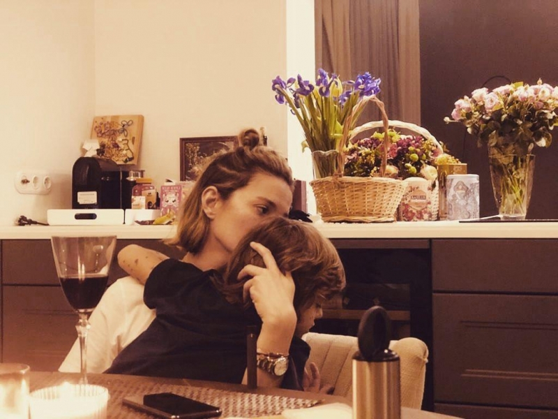 На недавнем снимке, которым Надежда поделилась в микроблоге, ее сын Иван тоже сидит к камере спиной. Он нежно обнимает маму, расположившись на ее коленях. Фото, по всей видимости, сделано на кухне в квартире Надежды.