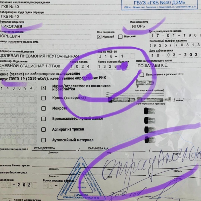 Игорь Николаев На прошлой неделе Лев Лещенко был госпитализирован в инфекционную больницу в подмосковной Коммунарке, у артиста диагностирован коронавирус. В той же клинике оказался и певец Игорь Николаев, который почувствовал недомогание несколько дней назад. Исполнитель находился в группе риска по заражению, ведь вместе со Львом Валерьяновичем посетил празднование дня рождения сестры Игоря Крутого. Результат теста Игоря Николаева С симптомами заболевания коронавирусной инфекцией певец был доставлен в клинику, в течение нескольких дней он находился на лечении, а сегодня получил результаты анализов на коронавирус. Они оказались отрицательными. Игорь решил показать фото заключения медиков в микроблоге. «Долгожданный результат: COVID-19 отрицательно! Я очень благодарен своим друзьям и коллегам за искреннее беспокойство и слова поддержки! Спасибо всем, кто верил в положительный исход и был тактичным и доброжелательным! Спасибо прекрасному коллективу Коммунарки за профессионализм, оптимизм и неравнодушие!Спасибо семье за любовь, веру и надежду на лучшее!» — написал артист в социальной сети.