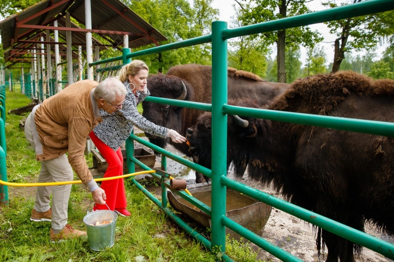 В Приокско-Террасном заповеднике в Подмосковье Волга, Катя и Злата покормили семейство зубров — угощали с рук кусочками свежих яблок и морковью лесных великанов, а также посадили деревья в рамках приуроченной ко Дню Победы акции «Сад Памяти», посвященной погибшим во время Второй мировой войны.Вячеслав Фетисов выразил готовность поддержать Зубровый питомник и взять шефство над одним из местных зубров.