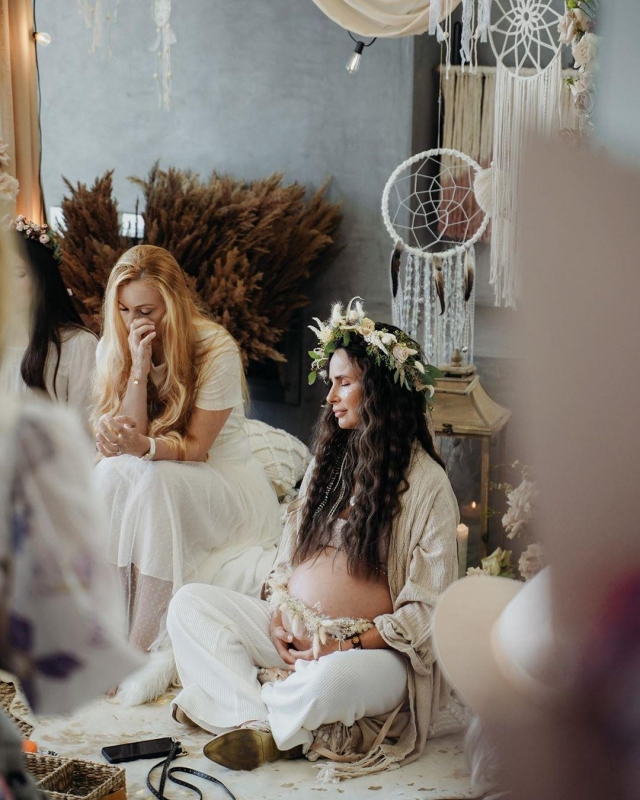 Венки, подарки и медитация: Саша Зверева устроила праздник в честь скорых родов - «Домашние Питомцы»