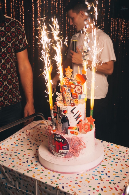 Завершилось торжество выносом праздничного торта, исполненного в стиле популярных социальных сетей.