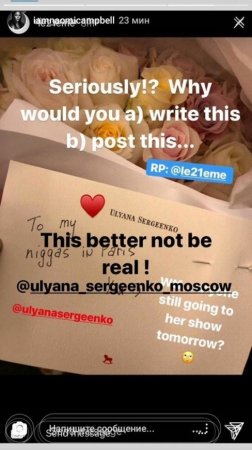 Ульяна Сергеенко и Мирослава Дума устроили международный скандал. Мирослава Дума разместило в своем Инстаграме фото приглашения на показ подруги Ульяны Сергеенко с текстом «To my niggas in Paris». Последствия не заставили себя долго ждать.