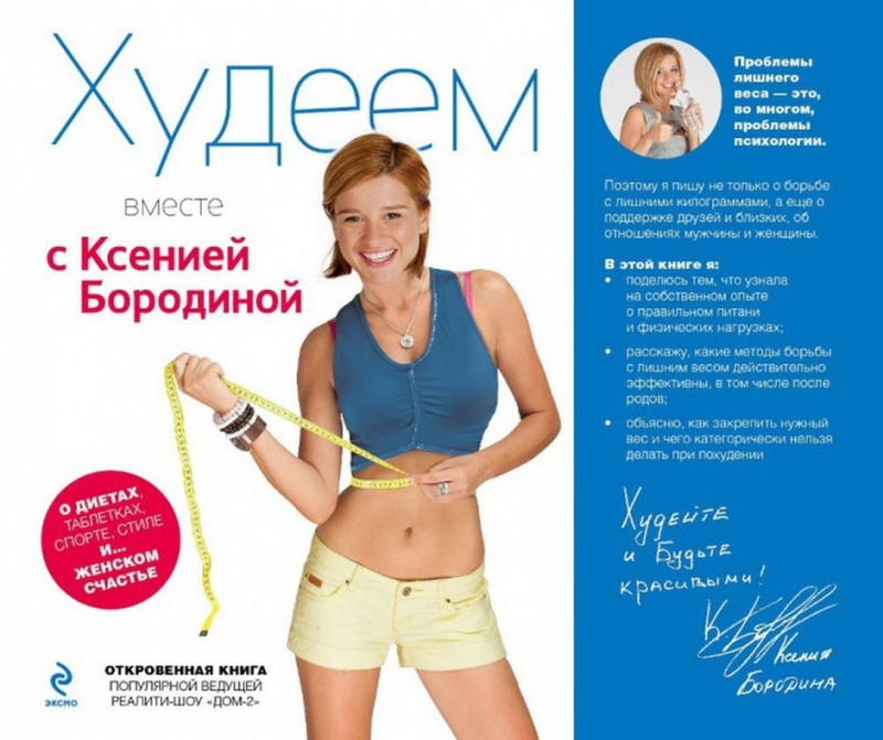 «Привет! Помоги похудеть!» — то и дело восклицают мои знакомые и друзья при встрече. Это вместо привычного вопроса «Как дела?» — картинно вздыхает Ксения еще в предисловии. Ты ведь тоже помнишь времена, когда диета Ксении Бородиной была популярнее косметики Кайли Дженнер? И успех был вполне заслужен, потому как телеведущая сбросила целых 22 кг. По словам Ксении, книгу пришлось написать, когда она обнаружила, что на ее уникальной диете в Сети зарабатывают другие. «Худеем вместе» написана от первого лица, там есть и про отказ от углеводов, и про раздельное питание, и даже про отношения с мужчинами. Правда, те, кто все-таки сподобился прочесть литературное произведение от телеведущей, расстроились: звезда, по их мнению, не открыла ничего нового.