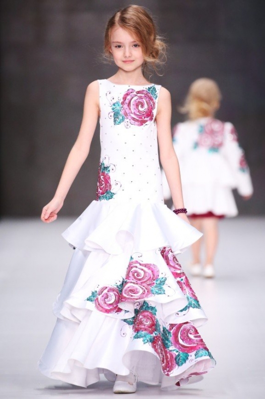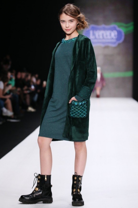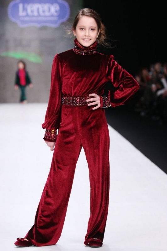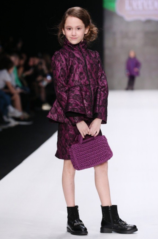 Второй день Mercedes-Benz Fashion Week Russia стал настоящим фестивалем детской моды. Свои коллекции для младшего поколения представили молодые российские бренды, в том числе и L’EREDE. На подиум вышли юные модели в весьма претенциозных нарядах, от которых не отказались бы и многие взрослые. Бренд L’EREDE представил гостям новую детскую коллекцию одежды, почти идентичную взрослым. Вместо пастельных оттенков здесь доминируют яркие и насыщенные цвета, такие как фиолетовый, фуксия, ярко-зеленый и бургунди. Основными материалами коллекции выступили бархат и атлас: например, бархатный комбинезон цвета марсала, украшенный стразами, и атласная пижама с инициалами юной хозяйки. Также акцент сделан на вязаные платья с объемными рукавами, которые идут в тандеме с грубыми ботинками. Рюкзаки, сумки и береты в коллекции тоже вязаные и сочетаются с брючными костюмами из парчи. Верхняя одежда здесь строгих силуэтов и цветов: темно-зеленый кейп с пайетками на груди и шуба винного оттенка. Длинные вечерние платья с цветочными принтами и воланами выполнены в испанском стиле, придавая коллекции колорита. Показ закончился блестящим выходом модели в пышном платье изумрудного цвета с перьями на верхней части корсета и полностью усыпанном камнями и пайетками. Во что одеть ребенка: фестиваль детской моды Art Fashion Во второй день Mercedes-Benz Fashion Week Russia стартовал Fashion Futurum Accelerator — интенсивная образовательная программа для начинающих дизайнеров, призванная познакомить их с последними тенденциями модной индустрии. В рамках этого дня прошел показ и детской коллекции бренда Art Fashion.