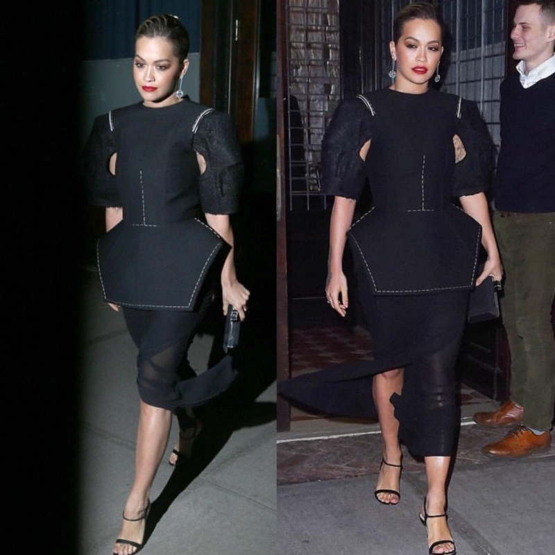 Среди гостей мероприятия было немало знаменитых персон, в число которых вошла и 27-летняя исполнительница Рита Ора. Девушка появилась на мероприятии в геометричном черном платье из коллекции Vera Wang, которое дополнила открытыми черными босоножками на высоком каблуке. Завершили эффектный образ поп-дивы маленький темный клатч и длинные серьги. Поклонники звездной красавицы остались довольны ее оригинальным стилем и не скупились на теплые комментарии в социальных сетях. «Как в звёздных войнах»«Очень необычно…»«Неподражаема, как всегда»«Пиковая дама»«Красотка наша! Похожа на шахматную королеву из Алисы в стране чудес»