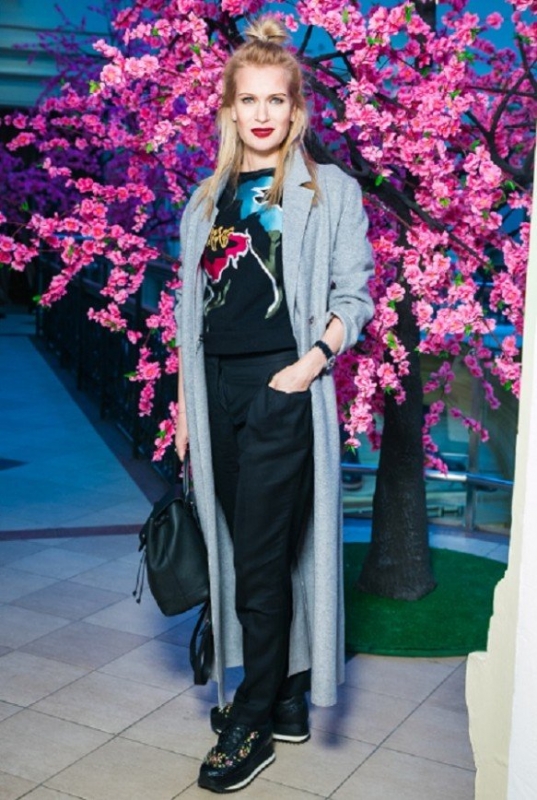 Известная актриса Олеся Судзиловская появилась на показе в довольно необычном образе, из-за которого ее даже не сразу смогли узнать некоторые фанаты. На 43-летней знаменитости красовались черные прямые брюки и черный топ с ярким крупным принтом на груди. Вечерним туфлям Олеся предпочла темные спортивные кроссовки с вышивкой, а дамской сумочке в руках - рюкзак за спиной. Поверх топа актриса надела светло-серый кардиган, который оставила распахнутым. Завершила образ Судзиловской небрежная укладка с пучком на макушке и струящимися по спине волосами, а также довольно яркий макияж с акцентом на губы.