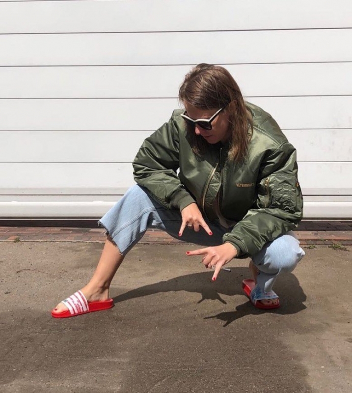 Телеведущая и кандидат в президенты Ксения Собчак поразила своих поклонников новым красочным образом. Проиграв выборы, светская львица вернулась к привычной жизни отечественного бомонда, и, между приемами и мероприятиями, нарядилась под стать важного человека из лихих 90-х. Объемная куртка, резиновые тапочки, солнечные очки и узнаваемая поза на корточках создали образ «деловых пацанов», решающих важные дела на лавках во дворе.