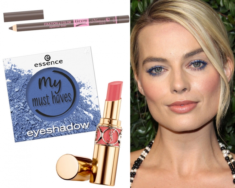 У синих оттенков большое поле деятельности: и скромная прорисовка по линии роста ресниц с помощью карандаша, и размашистые синие стрелки, и насыщенные смоки. Самый простой вариант из всего перечисленного — аккуратные линии, созданные с помощью теней или карандаша. Заверши образ, попросив помощи у карандаша для бровей и у персиковой помады, как это делает актриса Марго Робби.
