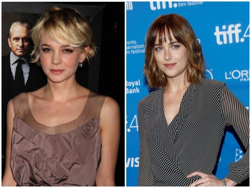 Кэри Маллиган (слева) и Дакота Джонсон (справа)Стилисты рекомендуют разреженную челку (то есть неплотную) всем обладательницам щечек или тем, кто хочет визуально чуть вытянуть лицо. Именно поэтому ее так часто выбирает Селена Гомес (у нее как раз по-детски круглое лицо). Если до конца следовать тренду, то можно еще и отпустить длину челки чуть ниже бровей. Укладка набок с помощью спрея тоже приветствуется. Стилисты также советуют сделать стрижку многослойной, так, чтобы несколько прядей обрамляли лицо — с помощью такого метода можно выделить скулы и без всяких скульптурирующих палеток.