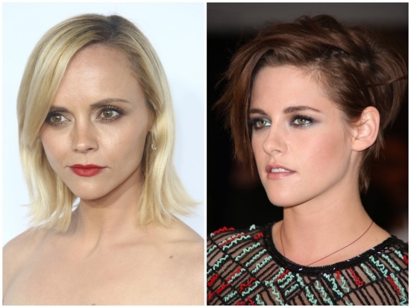 Кристина Риччи (слева) и Кристен Стюарт (справа)Острый подбородок, который характеризует лицо в форме сердца, можно сделать визуально чуть меньше с помощью челки набок и все той же многослойной стрижки, причем стилисты еще и советуют укладывать пряди максимально близко к лицу. Более классический вариант демонстрирует актриса Кристина Риччи, а более бунтарскому образу может научить Кристен Стюарт, которая знает толк в небрежных прическах.