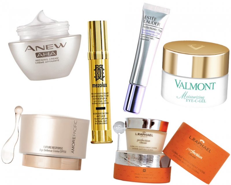 Биоармирующий антивозрастной ночной крем с коллагеном, Mezolux Филлер для быстрого заполнения морщин Perfectionist Pro с гиалуроновой кислотой, Estee LauderКрем Refining Cream с фруктовыми кислотами, AvonКрем Future Response Age Defense Creme с полиглутаминовой кислотой, Amore PacificУвлажняющий гель с витамином С и кофеином для кожи вокруг глаз, ValmontКрем с ретинолом Perfection Cream, L.Raphael