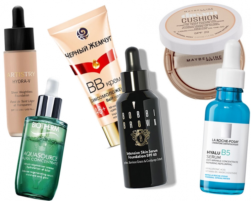 Тональный крем-кушон Dream Cushion, Maybelline NYСыворотка Intensive Skin Serum, Bobbi Brown Концентрированная сыворотка Hualu B5 Serum, La Roche-PosayВВ-крем «Самоомоложение», Черный жемчугТональный крем Sheer Weightless Foundation, ArtistryУвлажняющая сыворотка Aquasource, Biotherm