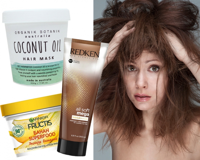 Маска для сухих волос All Soft Mega Mask, Redken Маска кокосовым маслом, Organik Botanik Маска для очень сухих волос с бананом и авокадо, Garnier