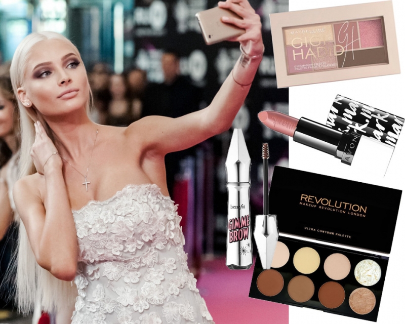 Гель для бровей, придающий объем Gimme Brow, BenefitПалетка теней Gigi Hadid Eyeshadow Palette, оттенок Cool/Clair, Maybelline NYПомада в оттенке Rosy Outlook, MarkПалетка для контуринга Ultra Contour Palette, Make Up Revolution