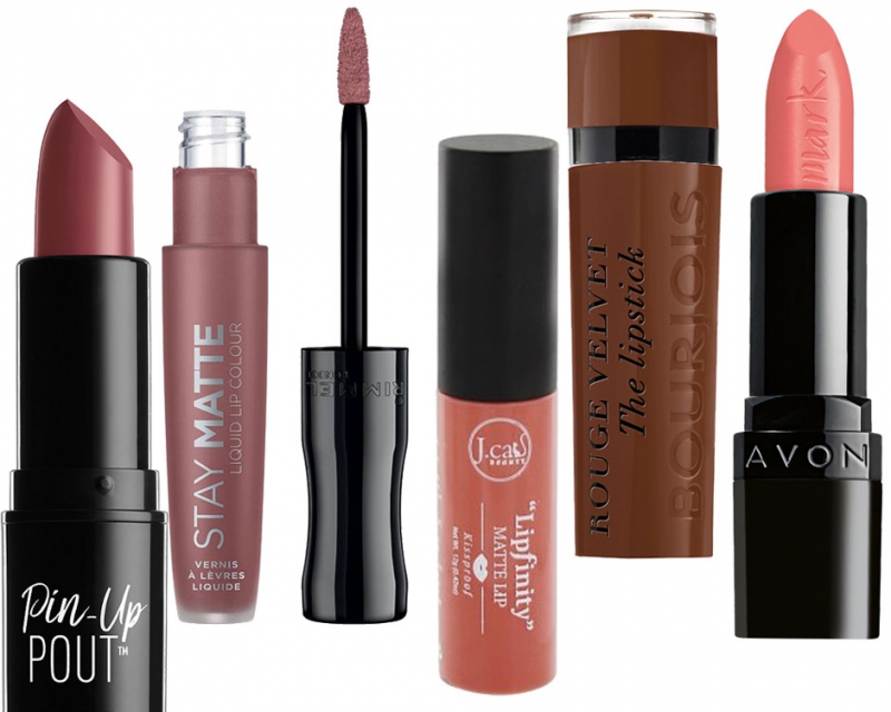 Помада Pin-Up Pout Lipstick, оттенок Resistance, NYXПомада Stay Matte, оттенок Fatal Kiss, Rimmel Помада Lipfinity Matte Lip, оттенок 103, J.CatПомада Rouge Velvet The Lipstick, оттенок 14, BourjoisПомада Lipstick, оттенок Get Cheeky, Mark Avon