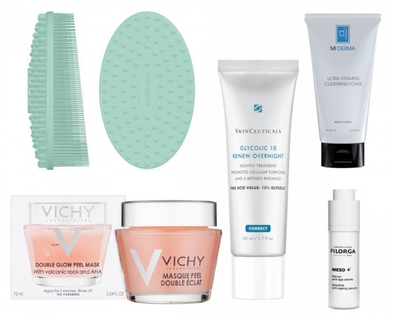 Массажная Силиконовая щетка I.M.Buddy, Double DareМаска Double Glow Peel Mask с фруктовыми кислотами, VichyНочной корректирующий крем Glycolic Renew Overnight с гликолевой кислотой, SkinCeuticalsСыворотка против старения Meso+ с ретинолом, Filorga Купить Пенка Ultra Vitamins Cleansing Foam, Mi Derma