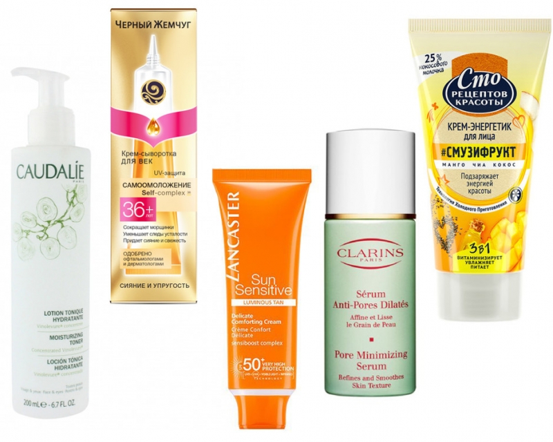 Увлажняющий тоник Moisturizing Toner, CaudalieКрем-сыворотка для век, Черный жемчугСолнцезащитный лосьон для лица Sun Sensitive, LancasterСыворотка для уменьшения пор Serum Anti-Pores, ClarinsКупить Крем-энергетик для лица, Сто рецептов красоты