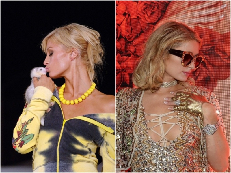 Пэрис Хилтон в 2005-м и 2018 годахНебрежные пучки существуют и сейчас (взять ту же Меган Маркл, которая с такой прической и с королевой не боится встречаться), но до такого объема, какой был дозволен в 00-х, им еще далеко. Тогда в прическу любили добавить неживые цветы, побольше заколок и накладные пряди в придачу. Пэрис Хилтон в те времена еще и не обходила стороной яркие тени и автозагар. Сейчас звезда больше экспериментирует с длиной стрижки и предпочитает всем остальным эффектам сияние на лице.