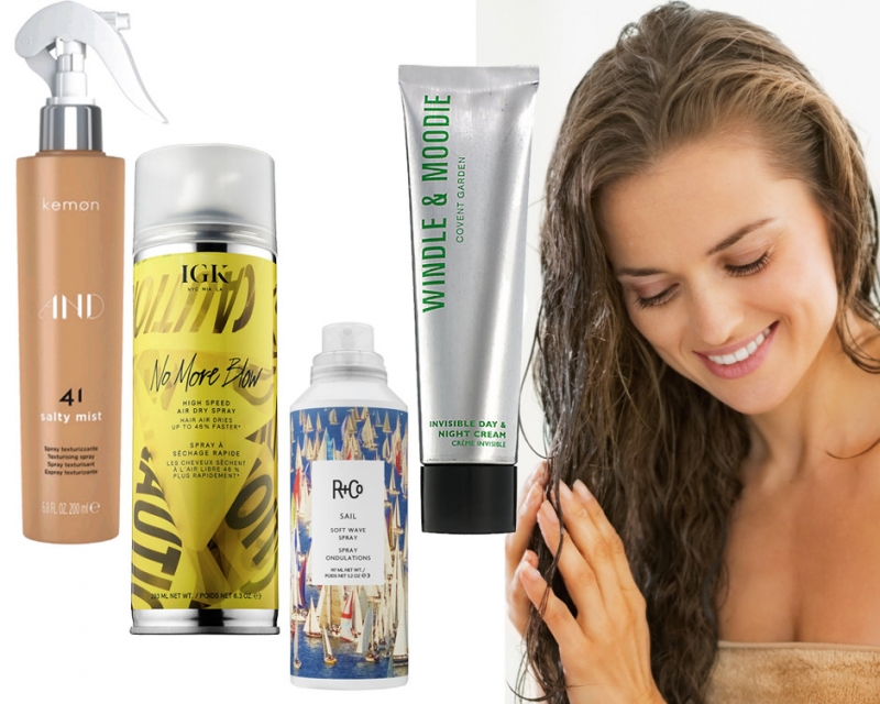 Спрей с морской солью Sail Soft Wave Spray, R+CoКрем для волос, Windle&MoodieСпрей с морской солью Salty Mist, KemonСпрей High Speed Air Dry Spray, IGK