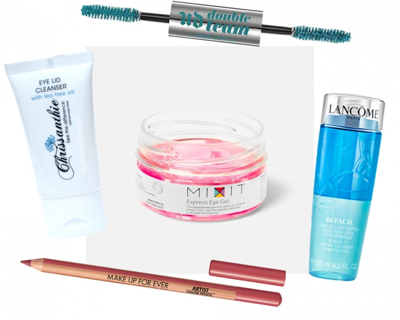 Ультраувлажняющая гель-маска для области вокруг глаз, MIXITЦветная тушь для ресниц и бровей Double Team, Urban DecayДвухфазный лосьон для удаления макияжа Bi Facil, LancomeКарандаш для макияжа Multi-use Matte Pencil, Make Up For EverСредство для очищения глаз, Chrissanthie