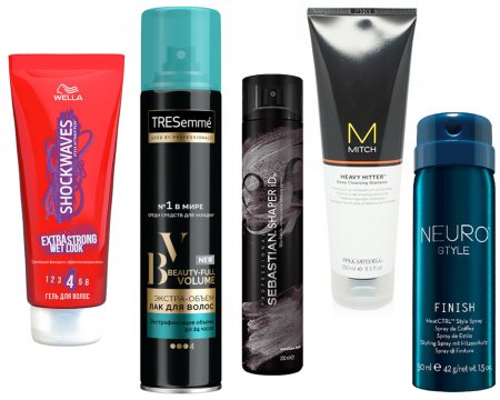 Очищающий шампунь, Mitch Лак для объема волос, TresemmeСпрей для создания текстуры, Sebastian ProfessionalГель с эффектом мокрых волос, WellaТермозащитный финишный лак, Neuro Style
