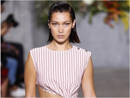Белла ХадидНе будем скрывать: это довольно смелый прием, который не каждая осмелится применить. Тем не менее прически с применением геля или лака доказали свою популярность на последних неделях моды. Кстати, с этим стилем возможны вариации с пробором.