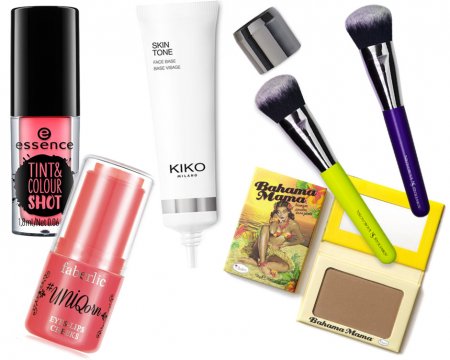 Бронзатор, theBalmКисти, Nikonorova&StolyarovБаза под макияж, Kiko MilanoТинт, EssenceСредство для макияжа глаз, губ и щек, Faberlic