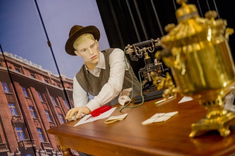 Большая часть образов создавалась под конкретное путешествие писателя и коллекционера Павла Манылова. Особый интерес представляют существующие в единичном экземпляре трости, обувь, мужские булавки, головные уборы, багаж. 90% гардероба сшито под конкретную поездку с учетом особенностей кроя различных эпох.На обозрение представлены мужские, сшитые на заказ, светлые гетры (гамаши). Позволить себе светлые гетры в начале XX века мог только настоящий франт. У Сергея Есенина были такие.