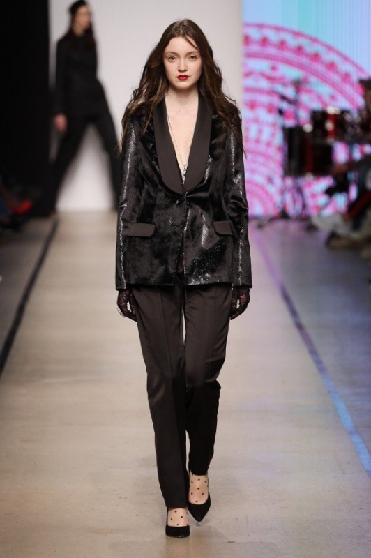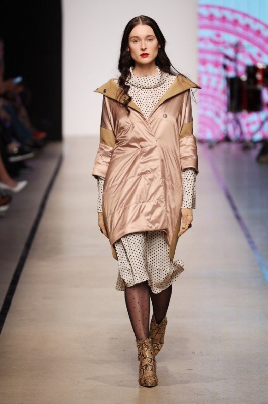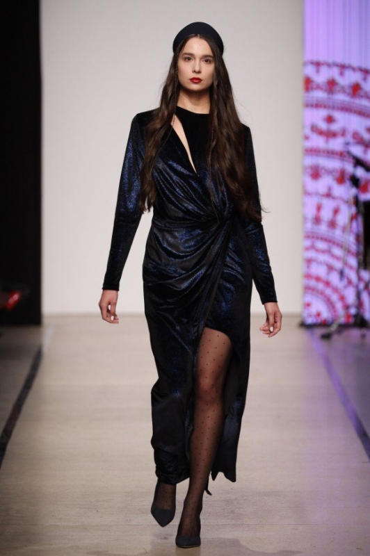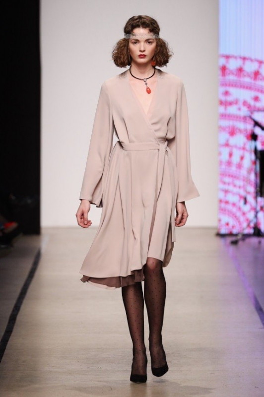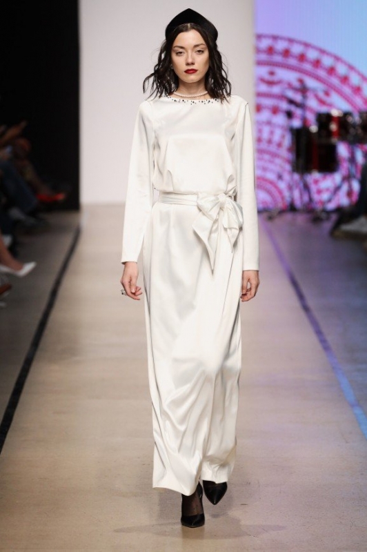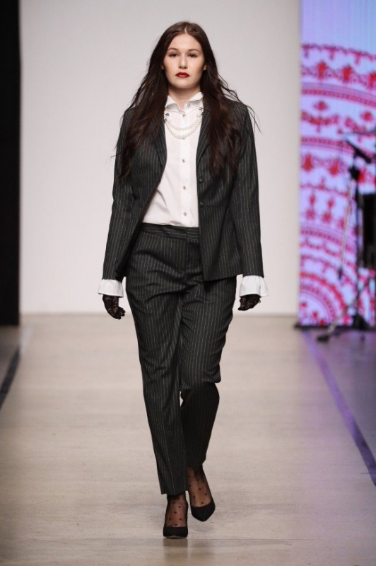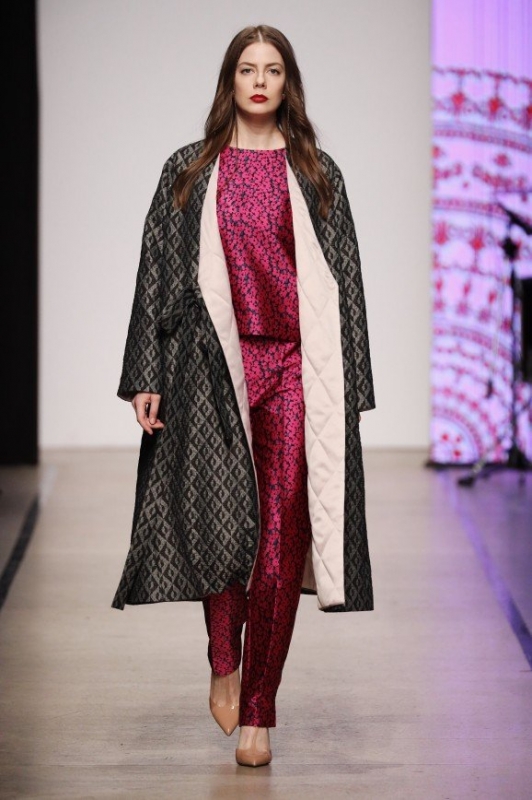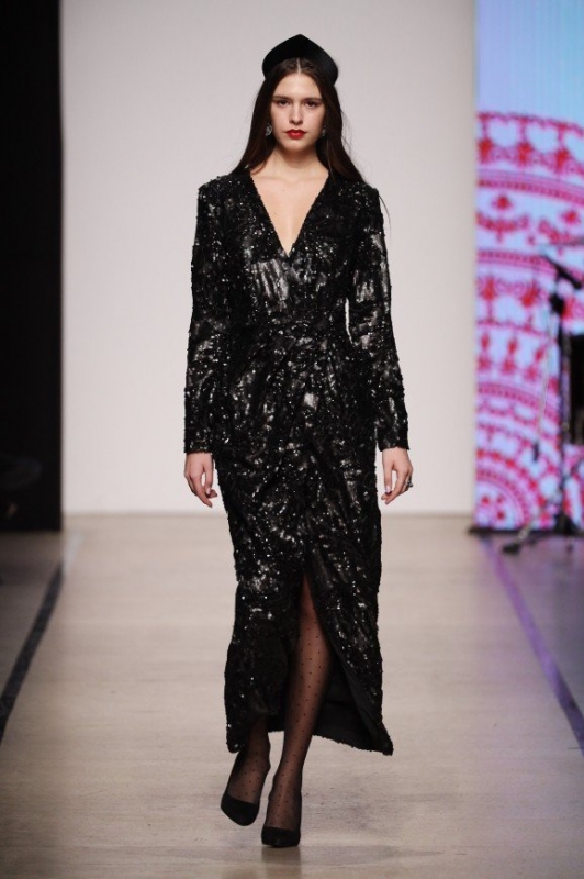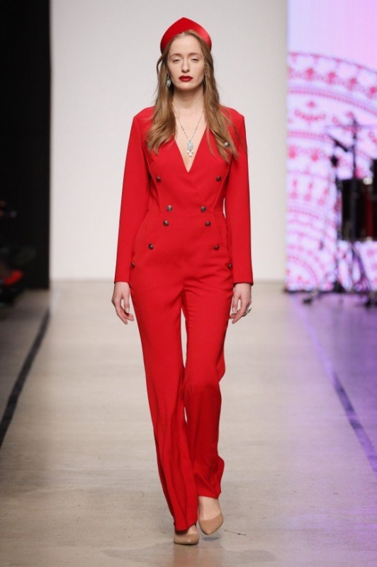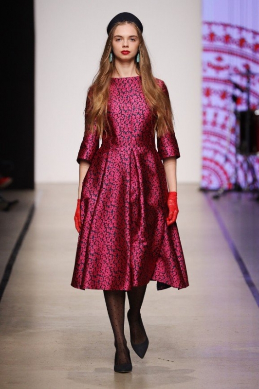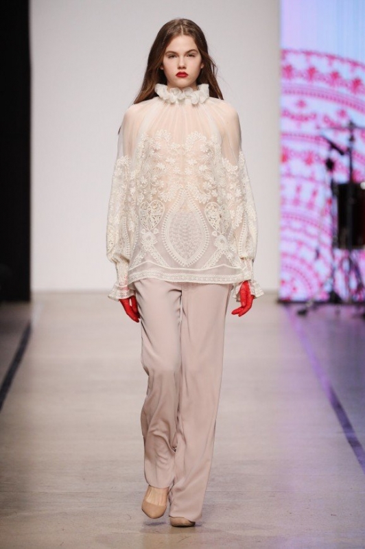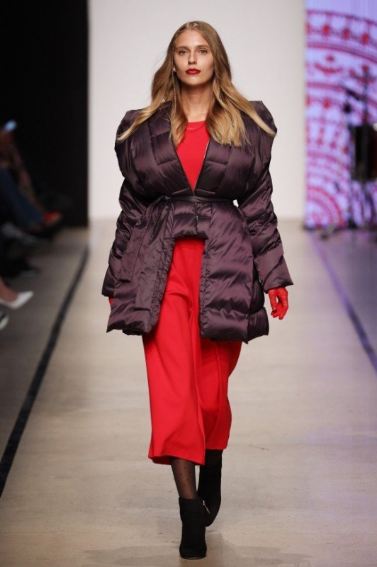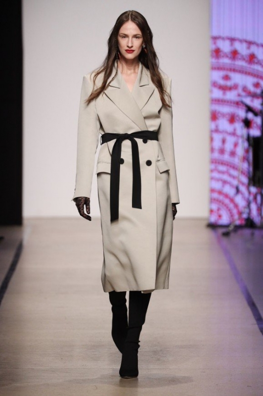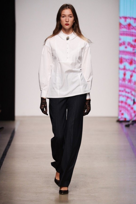 OKSANA FEDOROVA поддержала программу «Московское долголетие», в показе дизайнера участвовала модель старшего возраста. Свет погас и послышались звуки песни «Ах ты ноченька» в исполнении Дмитрия Хворостовского, и все в зале поняли, что коллекция - о России. Коллекция получилась спокойной, не вычурной и сдержанной. В деталях заметно, что действительно были переосмыслены российские костюмы разных эпох: рукава фонарики, головные уборы, напоминающие кокошники, кружевные перчатки, узоры, кафтаны, меховые воротники. Основные цвета коллекции - холодный бежевый, чёрный, красный, белый и серый. В некоторые моменты образы относили зрителей к образу крестьянки, в другие - к Анне Карениной и чему-то дворянскому. Но вся эта история была о женщине во всех ее проявлениях. Например, двубортный жакет с кюлотами в ломаную клетку, сочетающий белый и бежевый, подошёл бы современной и уверенной в себе девушке. А последнее бархатное платье со шлейфом стало бы отличным выбором для вечернего мероприятия.