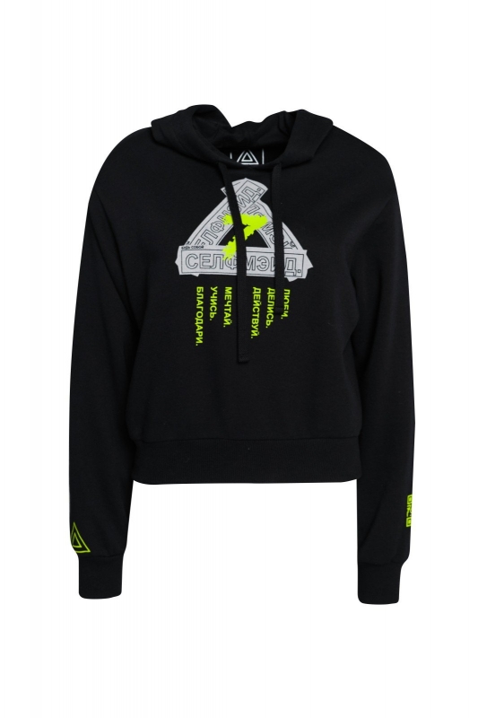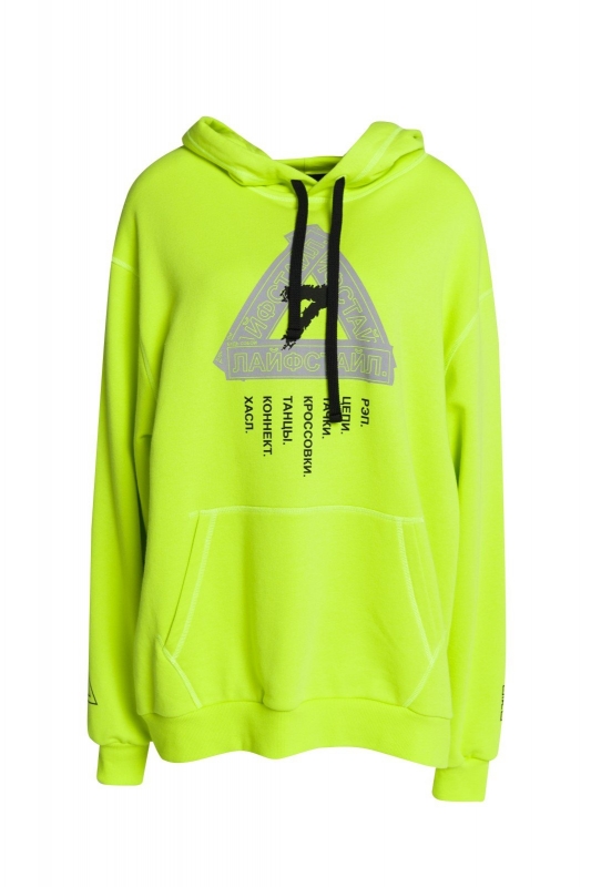 В коллекцию вошли 18 моделей черных, белых и неоновых зеленых цветов. Девушкам советуем обратить внимание на модные в этом сезоне кроп-топы, укороченные худи и кофты, а мужчины точно смогут забрать в свой гардероб одну из трех представленных футболок или оверсайз толстовок.