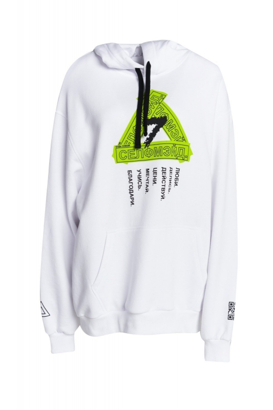 Но несмотря на разнообразие моделей и цветов, неизменными будут оставаться два принта. Для самых дерзких — принт со словом ‘лайфстайл’ и семью подписями, которые ассоциируются с ним у самих артистов — рэп, цепи, тачки, кроссовки, танцы, коннект, хасл.