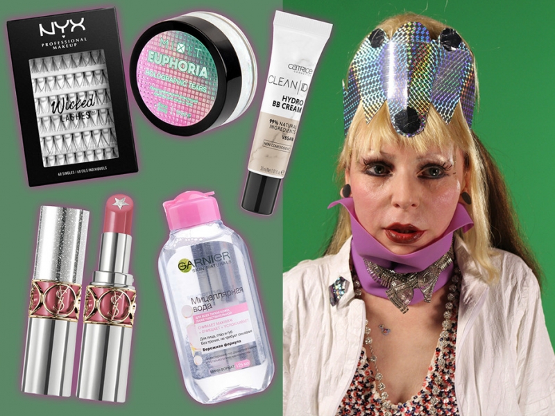 ВВ-крем, CatriceМицеллярная вода, Garnier Накладные ресницы, NYXПомада, Yves Saint Laurent Голографические блестки, MIXIT