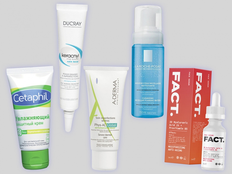 Увлажняющий крем, CetaphilУвлажняющий крем, Fact Пенка, La Roche-PosayКомплексное средство для ухода за кожей, склонной к акне, A-DermaТочечный корректор, Ducray