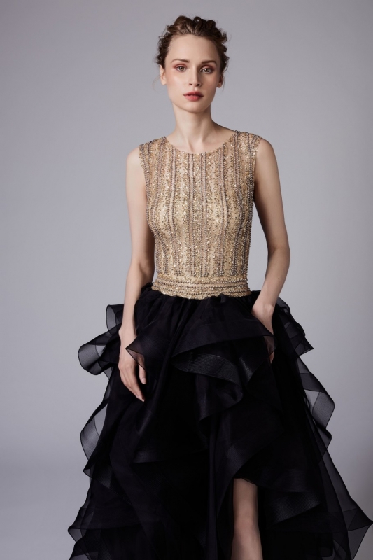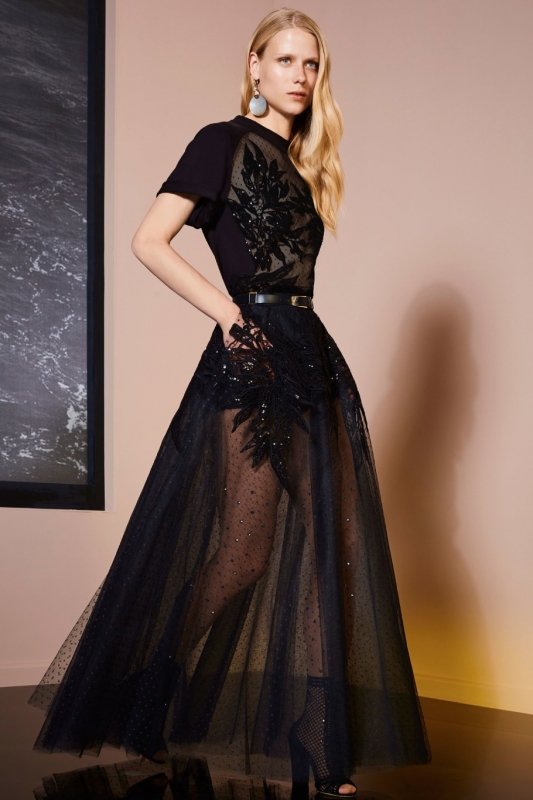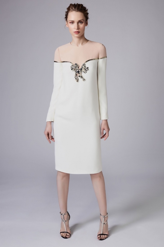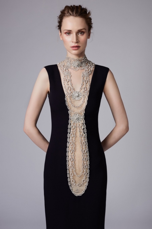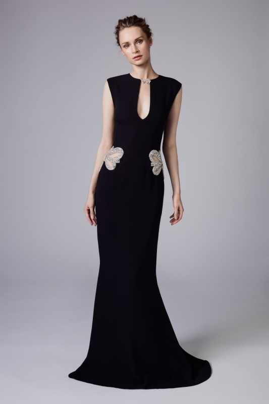Короткое платье или длинное – с декоративной отделкой любой фасон выглядит более привлекательным. Reem Acra украсил простое черное платье камнями, отчего оно вмиг стало роскошным и очень изысканным.