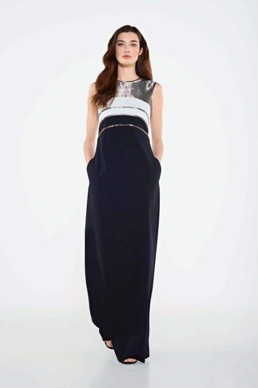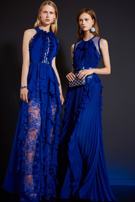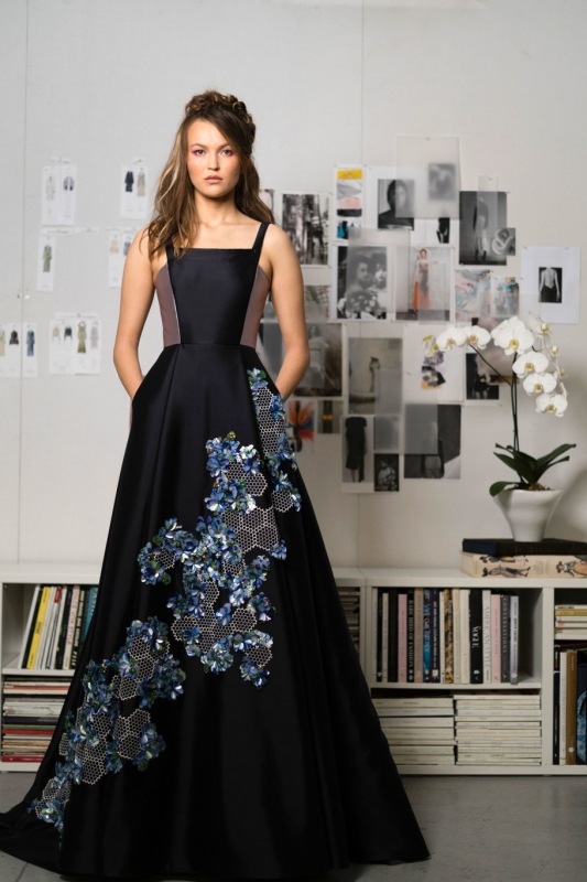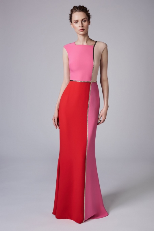 Среди представленных сюжетов преобладает абстракция и несложная геометрия, как у Reem Acra. Не стоит забывать, что мы говорим о вечерней моде, где предпочтение всегда отдается классическим фасонам и изящному декору.