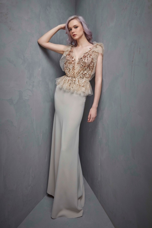 Тем, кто не готов примерить платье с ослепляющим эффектом, стоит присмотреться к моделям «металлик» или выбрать наряд, где декор комбинируется с матовыми фактурами, как у Zuhair Murad.