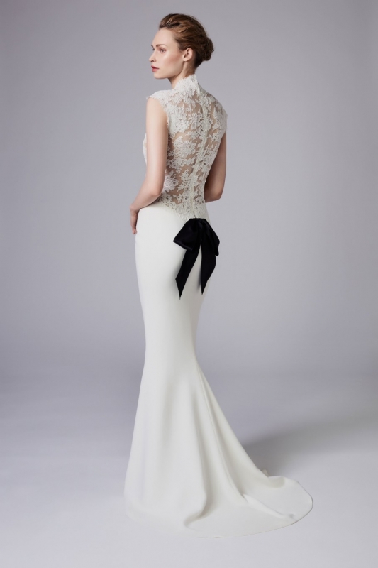 Платье-русалка – это своего рода классика, поэтому дизайнеры украсили свои модели кружевом, атласными лентами, жемчугом – тем, что делает образ более деликатным и элегантным (Reem Acra).