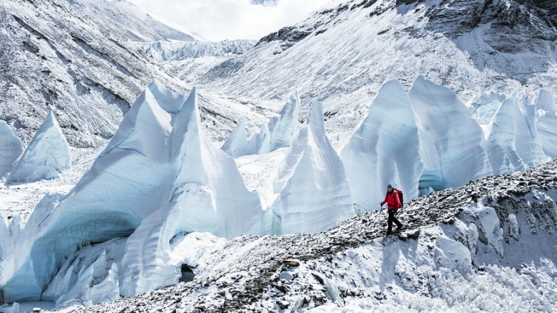 Альпинист на пути к северному склону Эвереста, Китай, 5 февраля 2013