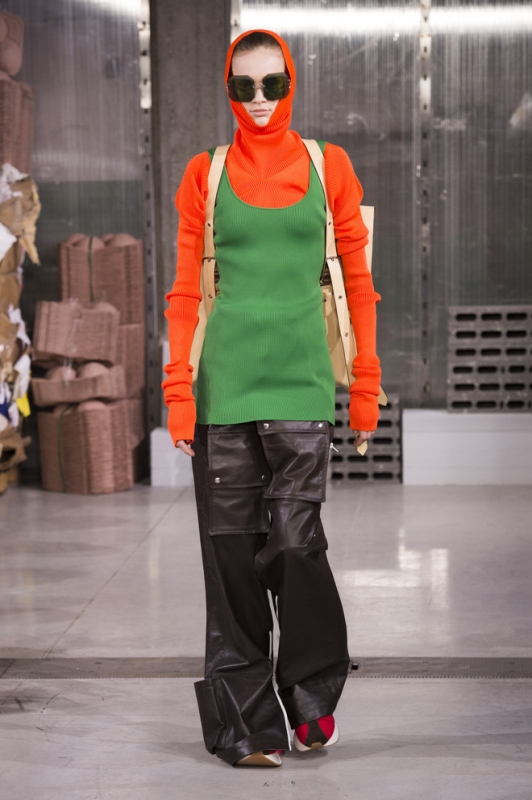 Если футуристичные образы с показа Marni не дают покоя, нужно всего-то найти в шкафу вязаный жилет и брюки-карго. А дальше всё зависит от вашей смелости.