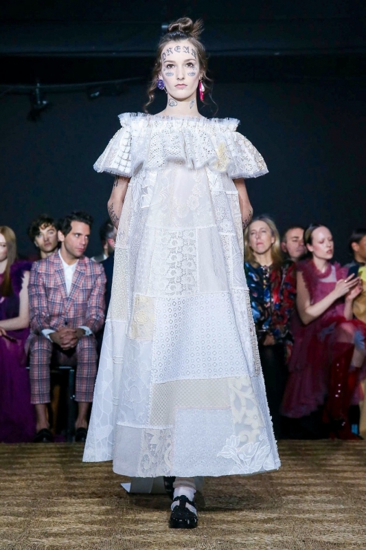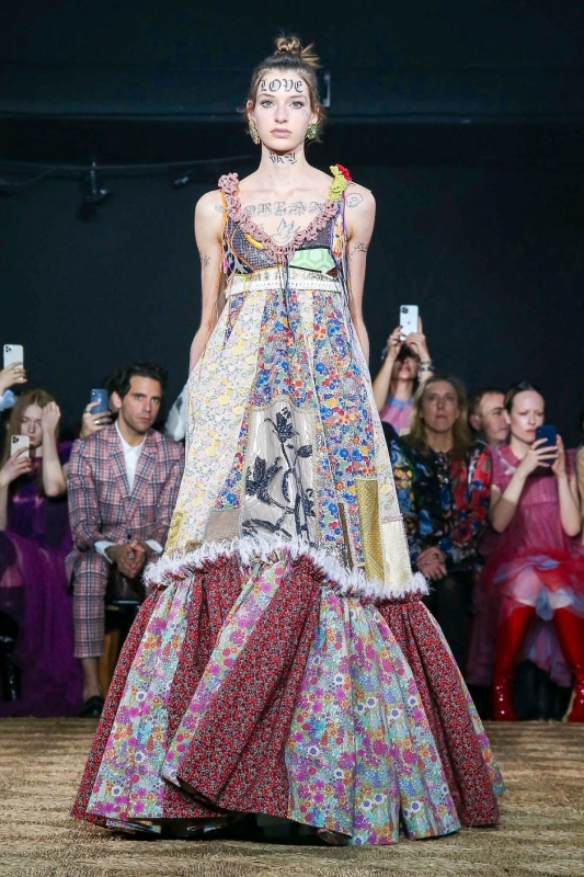 Несколько часов назад в Париже состоялся показ Viktor & Rolf. В новом сезоне бренд представил образы, созданные в технике пэчворк. «Делать большое из маленького», — эту идею дизайнеры вложили в коллекцию, куда вошли длинные вечерние платья, пышные юбки и романтичные сарафаны. Из интересных деталей: головные уборы из золотой, медной и серебряной фольги, а также татуировки со словом Dream, которые расположились на руках, лицах и ногах моделей. Тренд