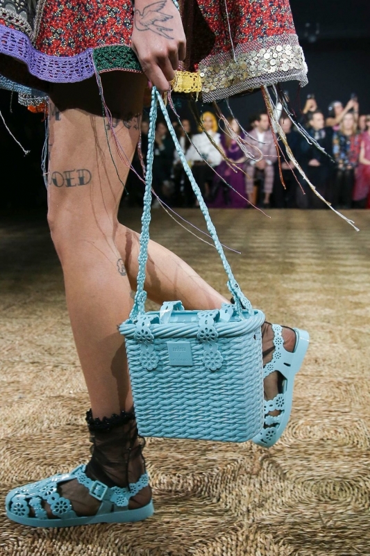 Сумки-корзинки, резиновые сандалии, татуировки, прозрачные носки.