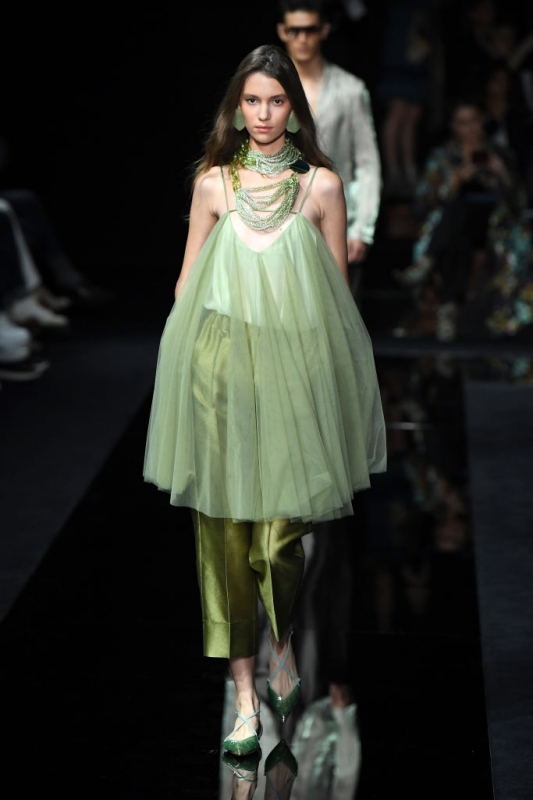 19 сентября в Милане прошел показ весенне-летней коллекции Emporio Armani. В этой линейке итальянский модельер Джорджио Армани представил роскошные вечерние образы, которые мы точно увидим на звездах во время наградного сезона.Дизайнер сделал ставку на пастельную палитру: в коллекции мы увидели летящий розовый шелк, органзу мятного оттенка, прозрачные голубые ткани. Также в коллекции смешаны ткани и текстуры: рифленый шелк, металлизированная кожа, пайетки.