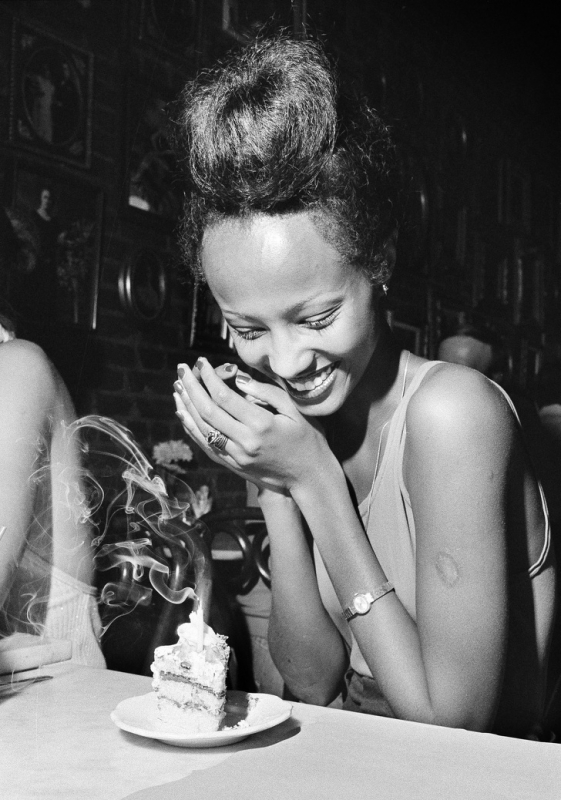 Иман празднует свой 21-й день рождения в одном из ресторанов Нью-Йорка, 1976 год.